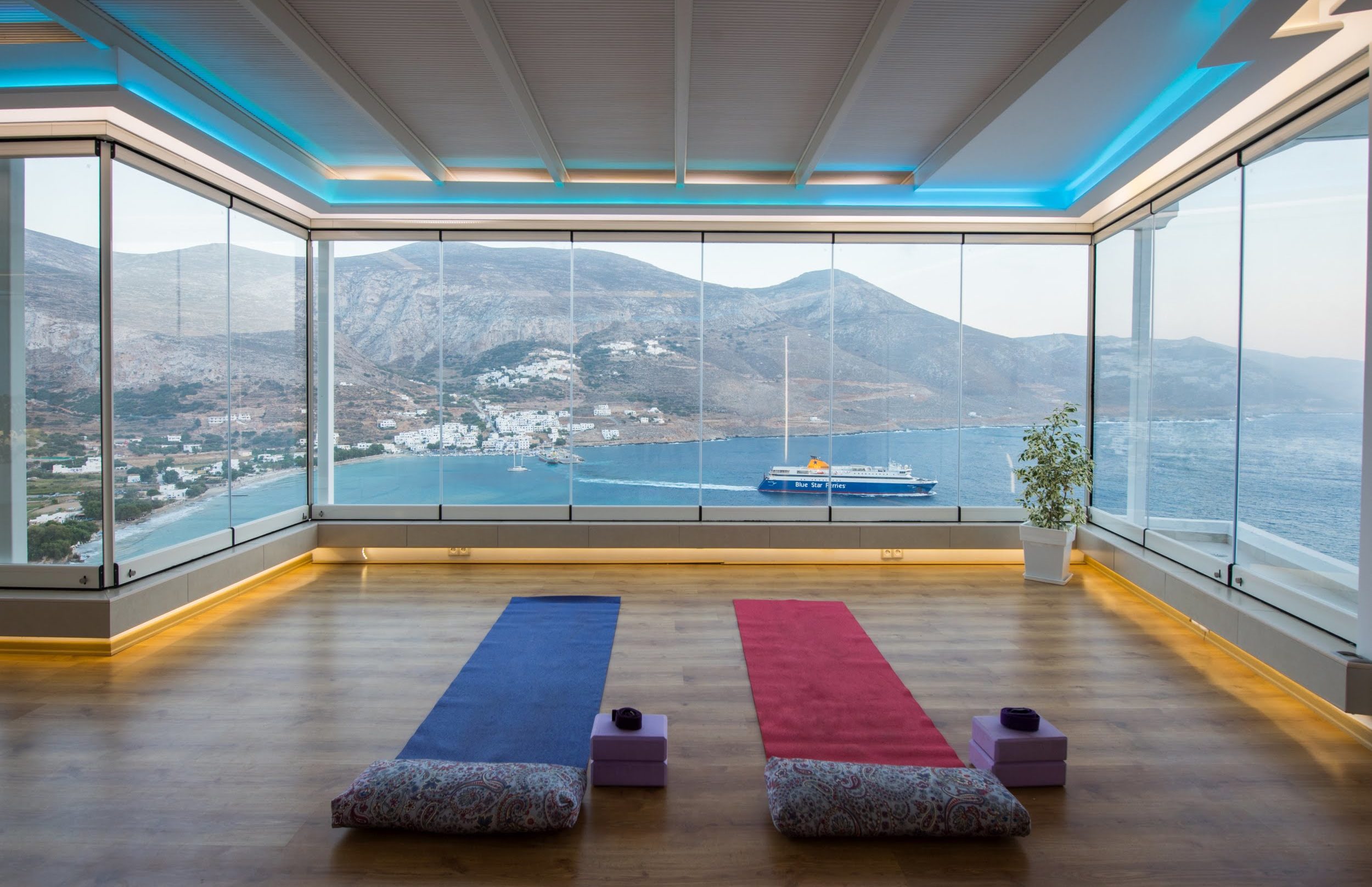 The Hotel Aegialis hosts many yoga retreats during the year, and has several different studios. (Have a look at their website – https://amorgos-aegialis.com) All have props and everything we need to practice with brilliance and in comfort. The only ingredient missing is us. We can’t wait to start this new tradition in 2021 with you!